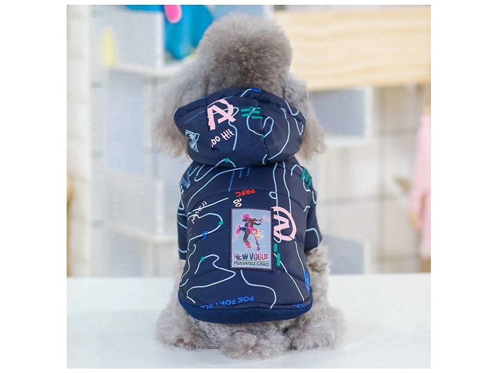 Praktická zateplená bunda. Zapínání na patentky na bříšku pejska. Svrchní materiál je polyester, spodní vrstva je fleece a střední vrstva je zateplení.