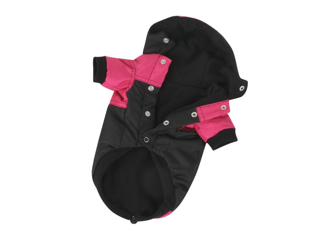 Součástí bundy je kapuce, kterou lze vzadu připnout, aby nepadala pejskovi do očí. Na zádech se nachází praktický otvor pro připnutí vodítka, takže bunda nijak neomezuje běžné venčení.