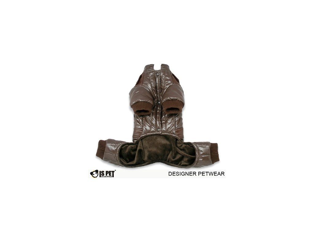 Prošívaná zimní kombinéza moderního modního designu s nápisem „Golden Bone“ na zádech. V pase je kombinéza přestřižena a odobena páskem. Vnitřní část kombinézy je podšitá teplou kožešinovou podšivkou ve stejné barvě. Zapínání ve spodní části je na patentky. Kombinéza vašeho pejska zahřeje v každém počasí.
