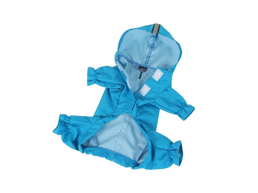 Velice pěkná, propracovaná kombinéza pro psa, která jen tak neprofoukne. Kombinéze je z moderní velmi kvalitní šusťákoviny. Obleček je částečně voděodolný, tedy pro kratší déšt je použitelný jako pláštěnka. Obleček je doplněn několika reflexními prvky pro větší bezpečnost vašeho pejska za každého počasí a denní doby. Zapínání je rychlé a praktické na suchý zip na bříšku pejska. Na zadečku je stahovací šňůrka aby obleček dobře sedl. Kombinéza má na zádech praktický otvor na vodítko. Kombinéza je svojí nízkou hmotností vhodná i pro subtilnější pejsky, což máme i z praxe oveřeno uživateli.