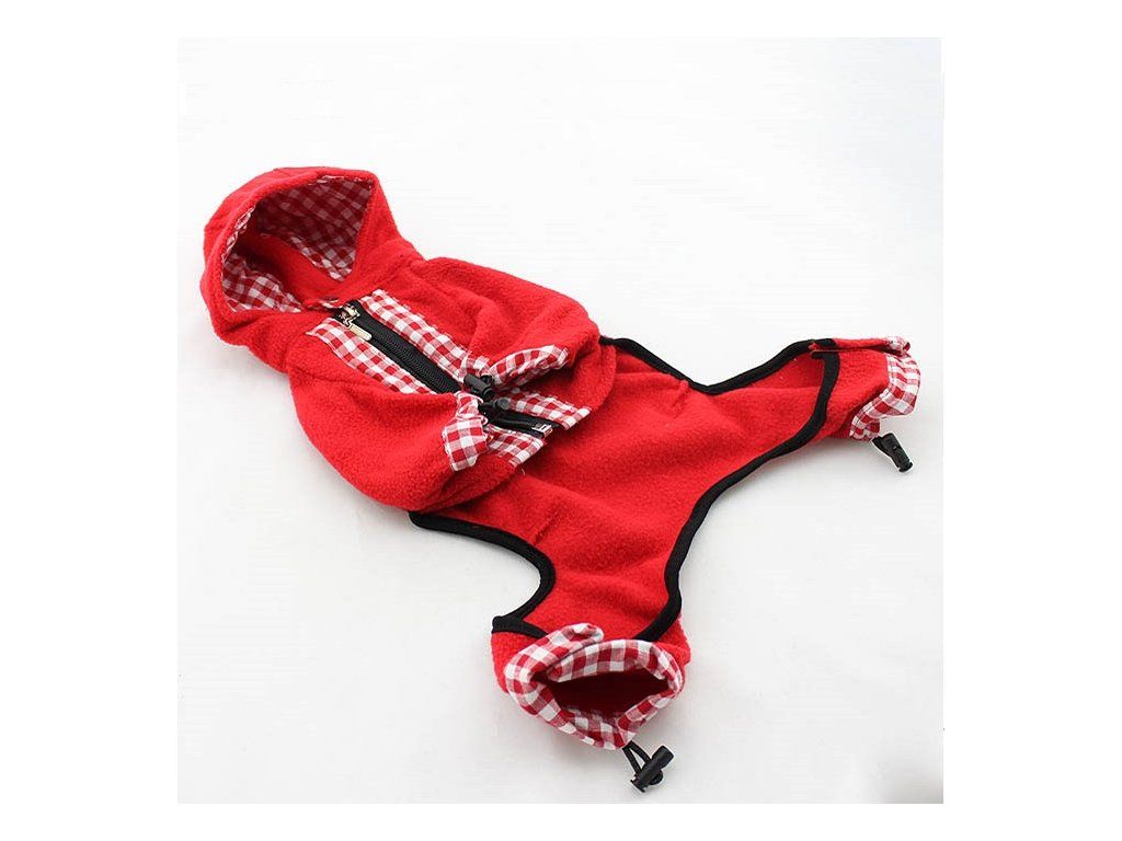 Velmi elegantní červená kombinéza moderního designu z materiálu fleece.