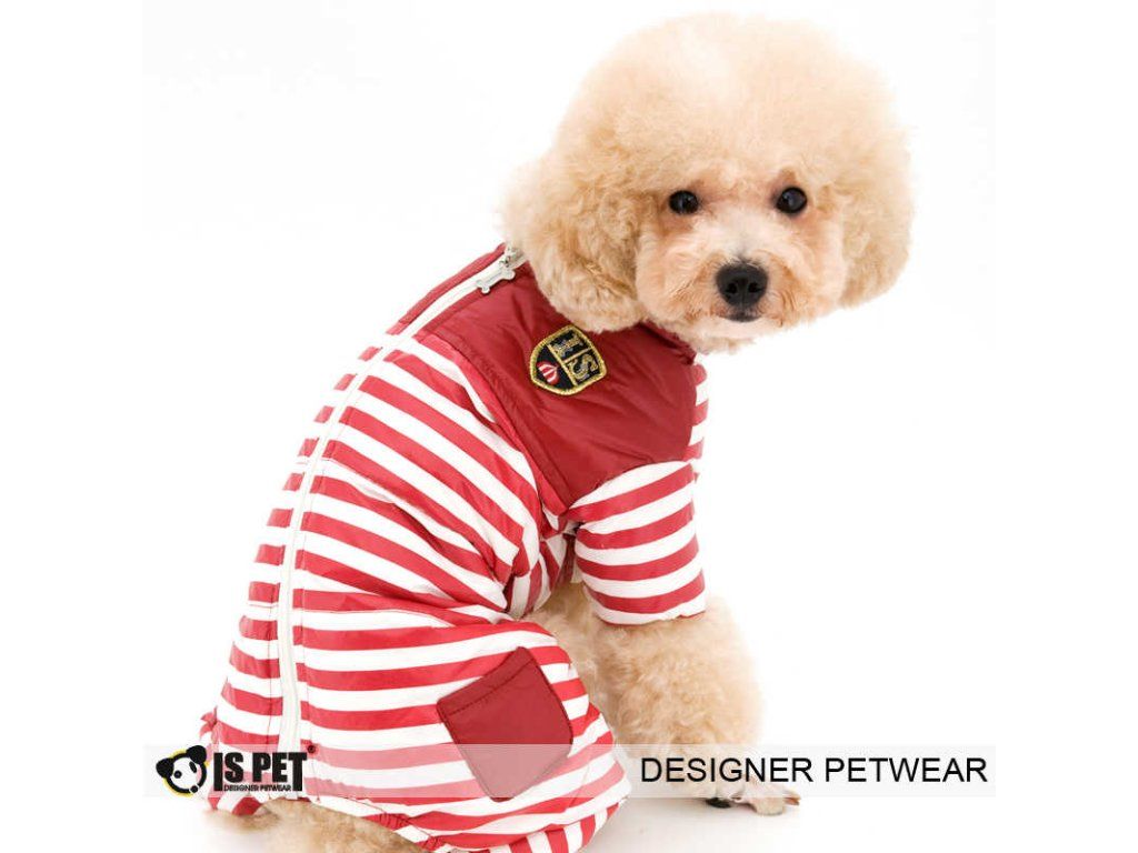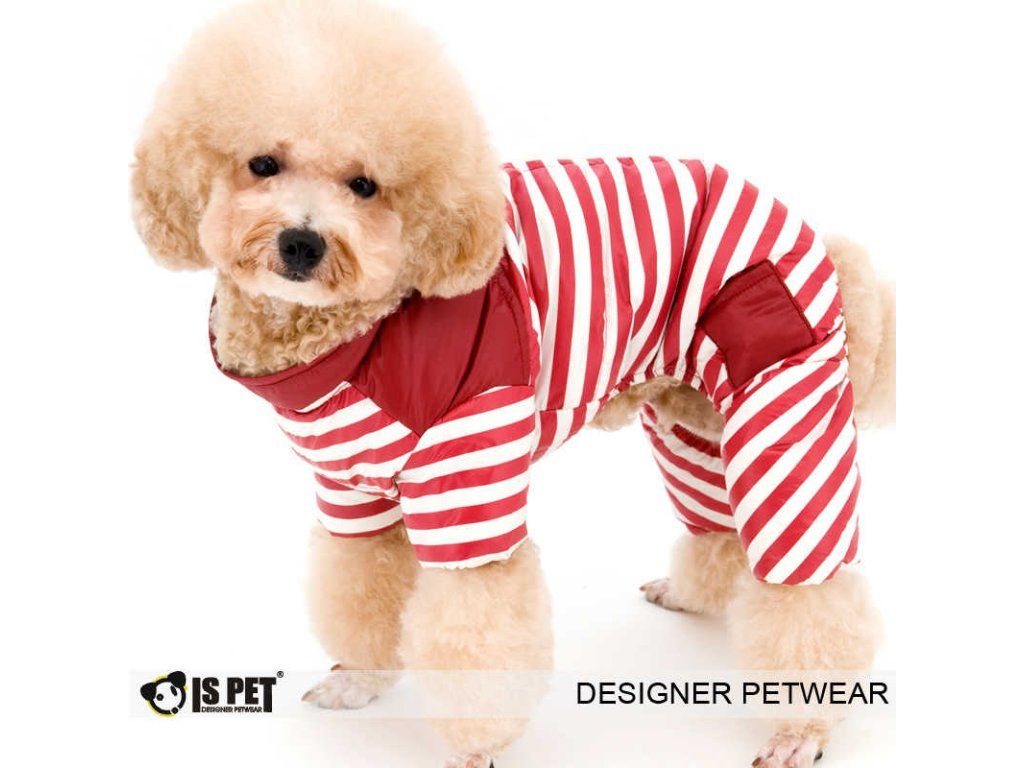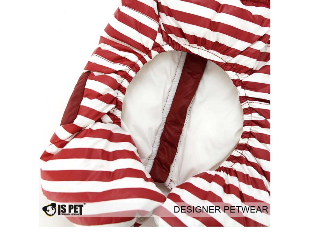 Krásná kombinéza s elegantním proužkovým vzorem z lehké šusťákoviny. Zapínání je na zip na zádech pejska.