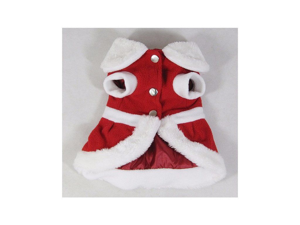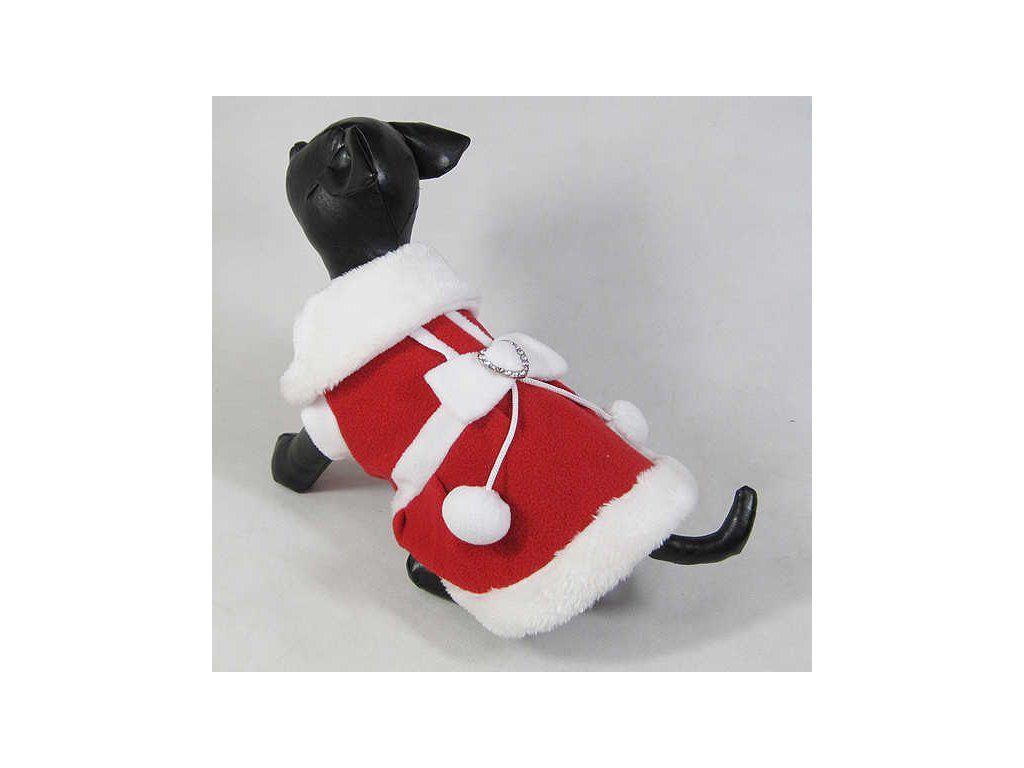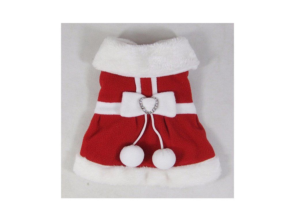 Velice stylový zimní "santa" kostým. Jedná se o červeno-bílý fleecový obleček se sponkou s lesklými kamínky a bambulkami.