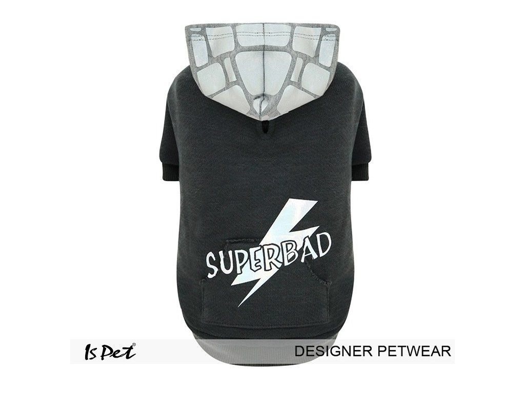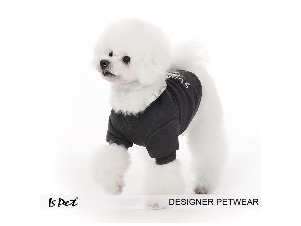 Krásná a velmi příjemná mikina z teplákoviny v tmavě šedé barvě s šedostříbrnou kapuckou. Mikina má kapucku a praktický otvor pro vodítko. Mikina je převážně bavlněná a částečně pružná.