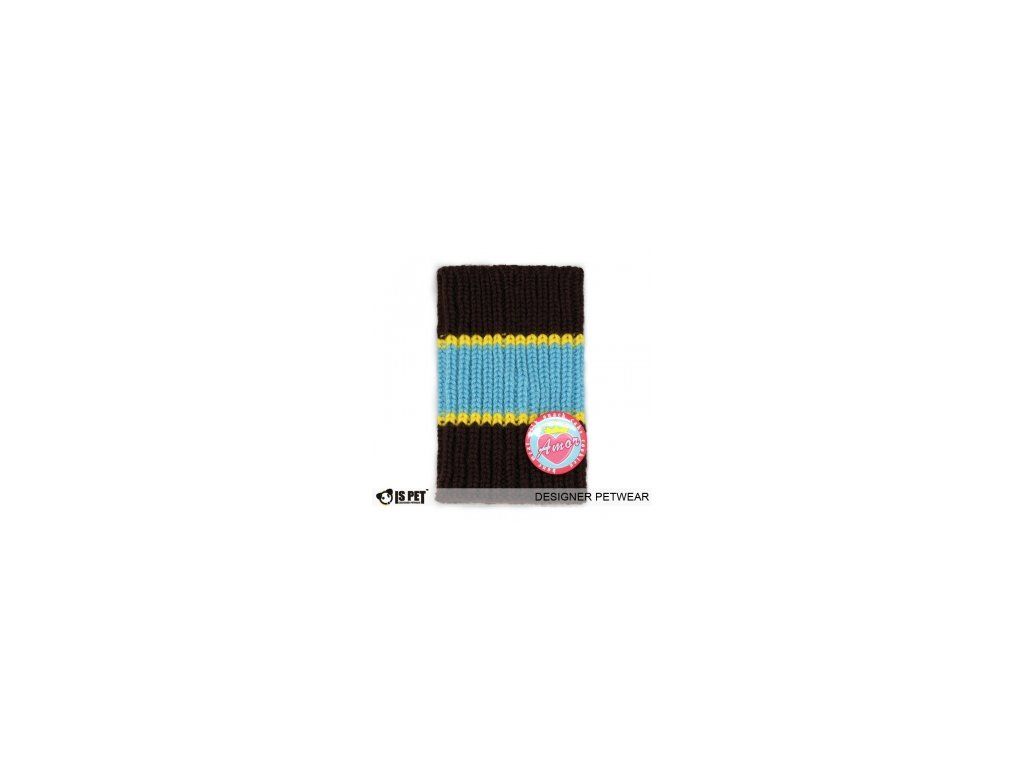 Velmi teplý, pletený psí nákrčník v barvě hnědo - modrá. Nákrčník je dodáván spolu s ozdobným odznáčkem. Dopřejte svému pejskovi teplo v oblasti krku.