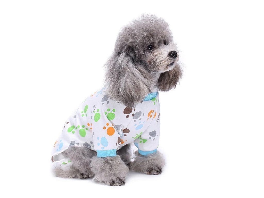 Příjemné pyžamo s motivem psí packy v různých barvách pro pohodlný odpočinek vašeho pejska. Pyžamo je ze 100% bavlny.