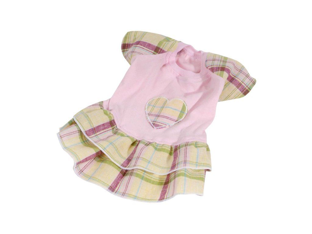 Elegantní růžové šatečky s kostkovanýmy rukávy a sukní. Materiál 100 % bavlna, kostkované části 45% bavlna a 55 % len.