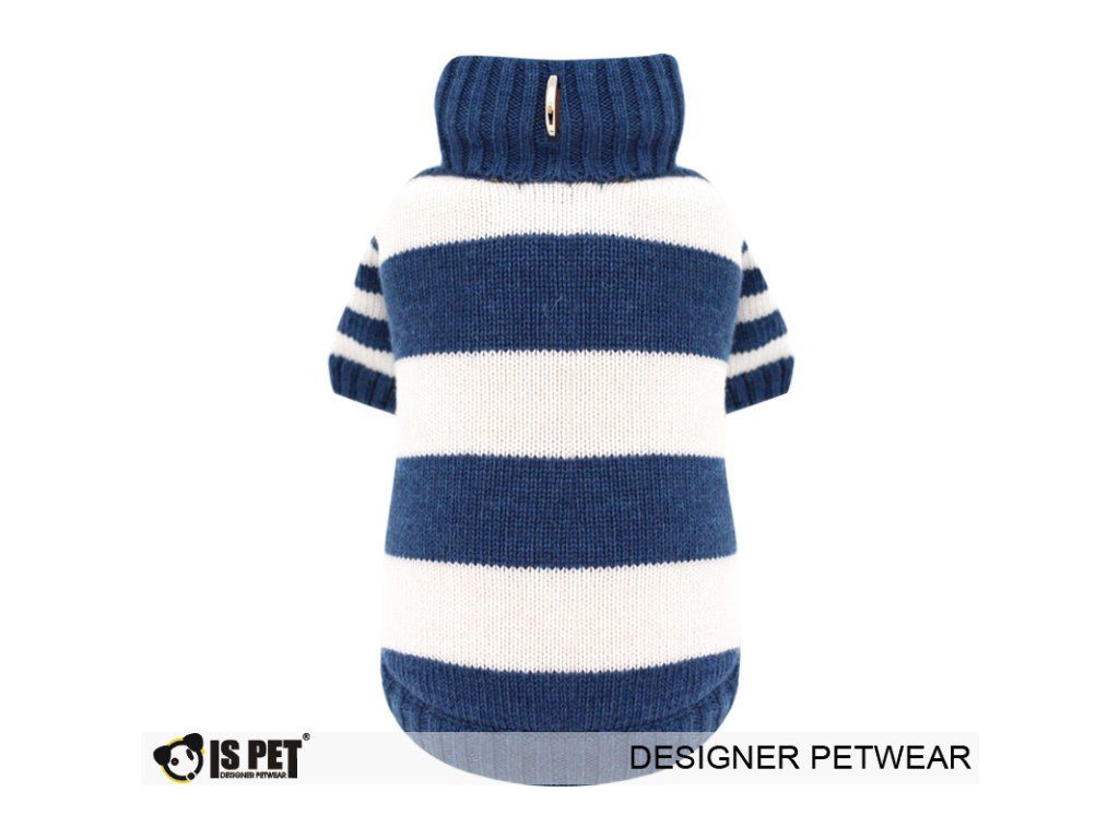 Velice teplý na dotek příjemný svetřík s elegantním proužkovým vzorem. Obléká se přes hlavu pejska.