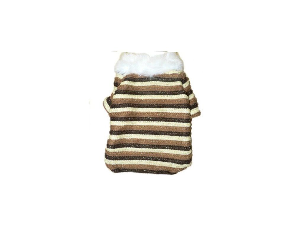 Elegantní a teplý svetřík s proužkovým vzorem ve velmi módní kombinaci barev by měl být nezbytnou součástí psího šatníku obzvláště v sychravém počasí. Zapínání svetříku je na zip. Barva hnědo-žlutá.