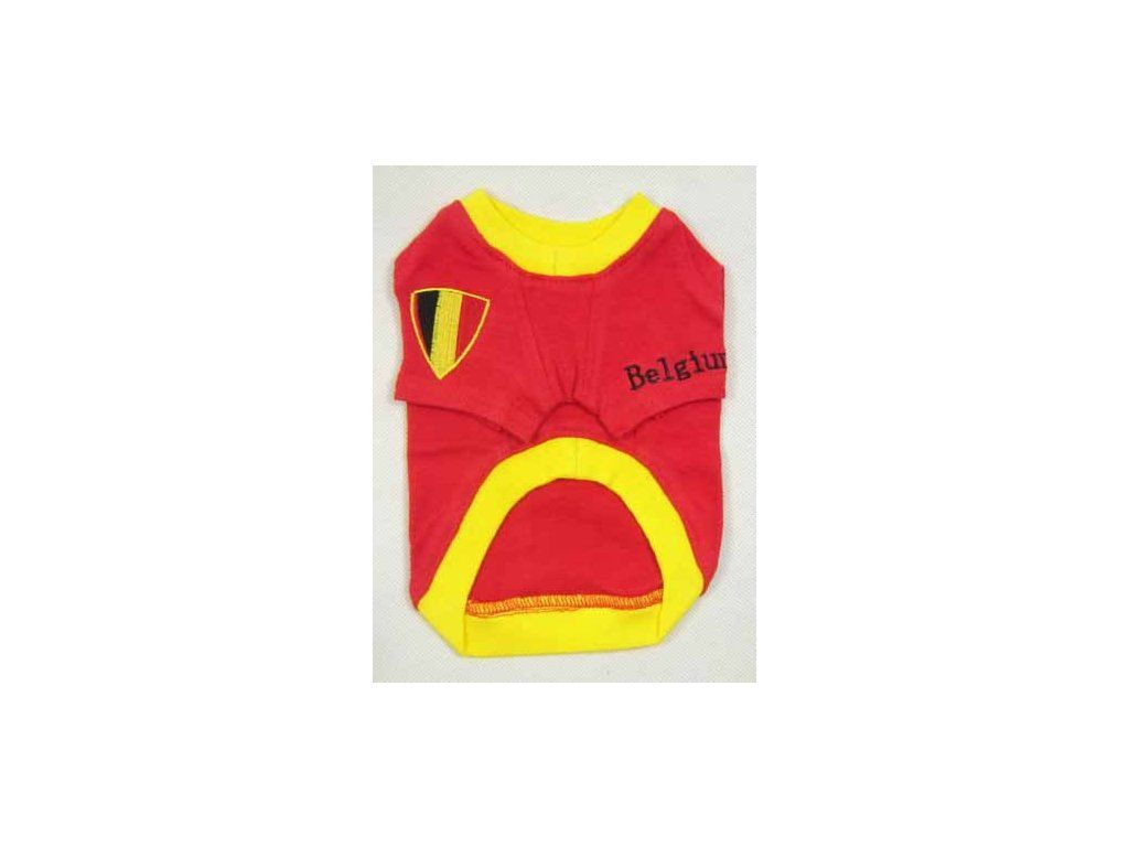 Belgický fotbalový dres s číslem na zádech.Na rukávu nápis Belgium a na druhém vyšitý znak.Udělejte ze svého pejska fotbalistu.