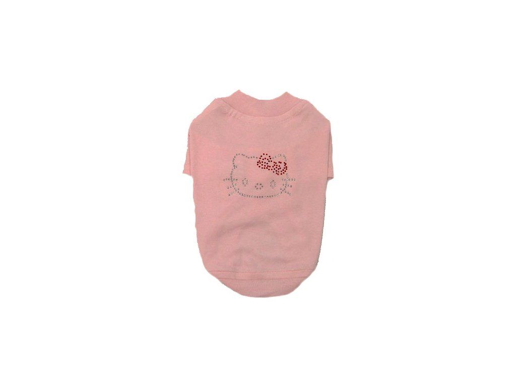 Krásné růžové tričko s kamínky na zádech s obrázkem kočičky s mašličkou.