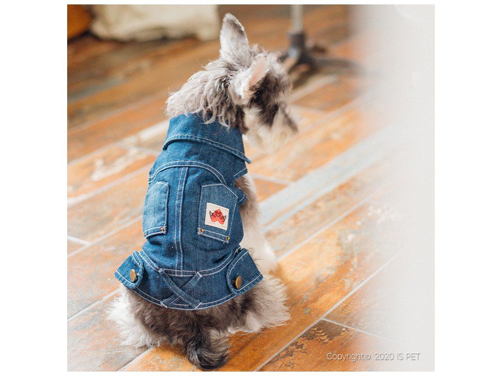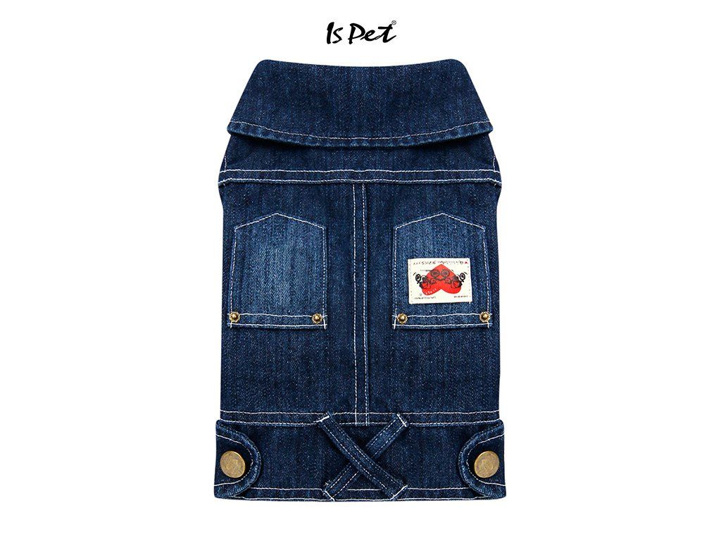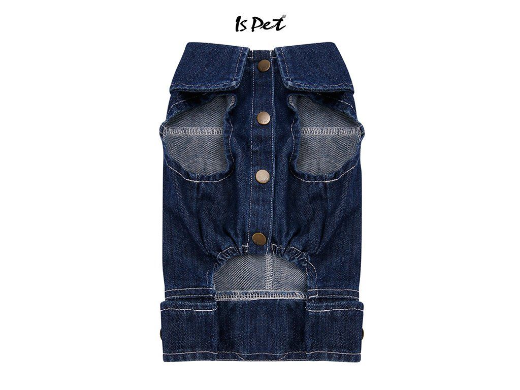 Detailně propracovaná riflová vesta. Obleček je na břišní straně doplněn všitou gumičkou aby lépe přilehl na tělo psa. Zapínání je na panety na břichu pejska.